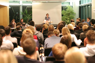 Sechs A’s: „Angestellte, Auszubildende, Arbeitslose, alle, alle, alle“. Sechs A’s, die für einen Antrag standen, der den kostenfreien Nahverkehr in Berlin einführen sollte. Es am Ende auch tat. Die erste Showdebatte des Verbands der Debattierclubs an Hochschulen e.V. (VDCH) und der Deutschen Bahn AG gemeinsam mit der Berlin Debating Union (BDU) gestern Abend war nach einhelliger Meinung aller Beteiligten ein großer Erfolg! In einem bis auf den letzten Platz besetzten Tagungssaal im Bahntower mit Blick über das nächtliche Berlin setzte sich knapp die zweiten Regierung mit Filip Bubenheimer und Dessislava Kirova (beide BDU) als bestes Team durch. Der Preis des besten Redner vergab das Publikum an Daniel Hinkeldein, der auf Seiten der Bahner eine pointierte und treffsichere Schlußrede hielt.