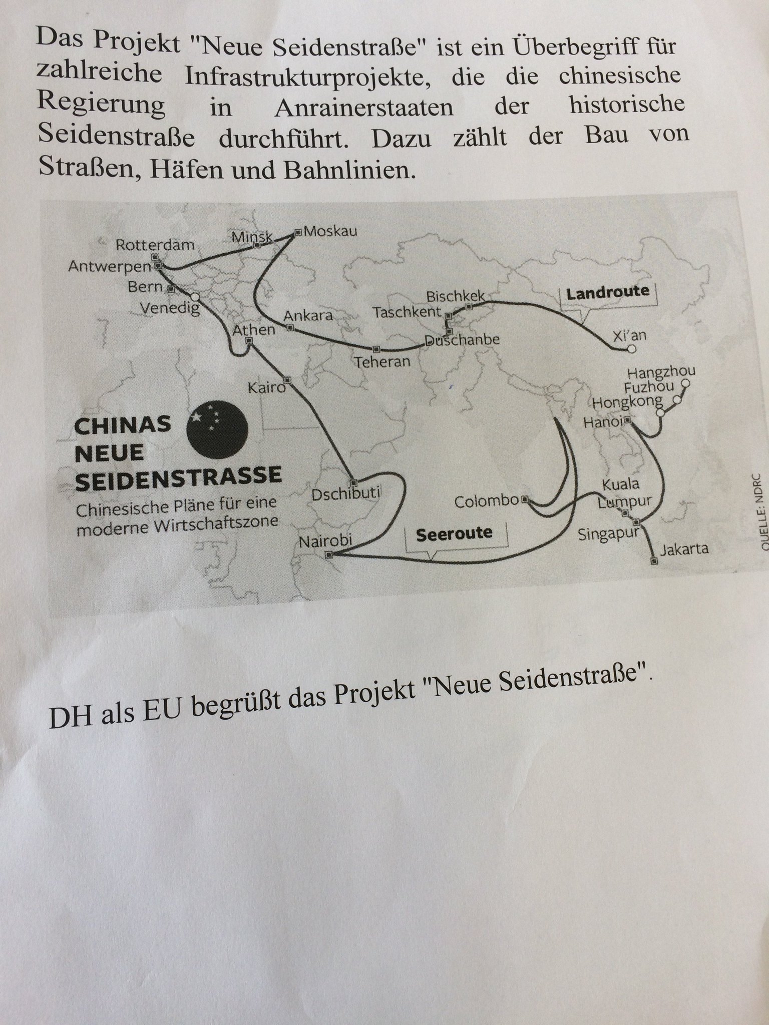 F: Infoslide: Das Projekt „Neue Seidenstraße“ ist ein Überbegriff für zahlreiche Infrastrukturprojekte, die die chinesische Regierung in Anrainerstaaten der historischen Seidenstraße durchführt. Dazu zählt der Bau von Straßen, Häfen und Bahnlinien. KARTE